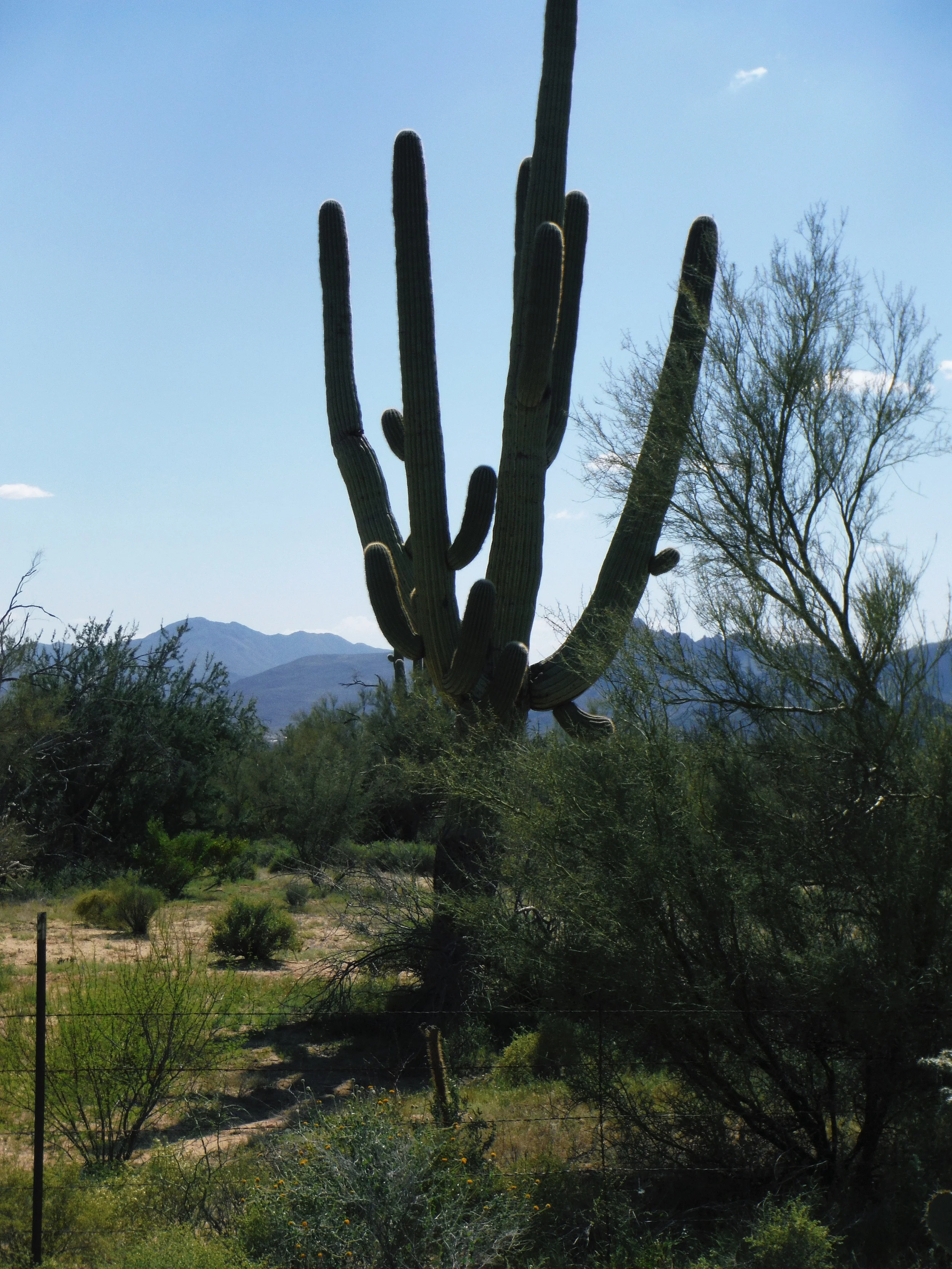 John and I were scheduled to ride this section. I was especially delighted since I was sick last year and missed it. We were blessed with 70 miles of great weather and warm temperatures. The saguaro cactus and other “Dr. Zeus- looking” cacti began appearing.