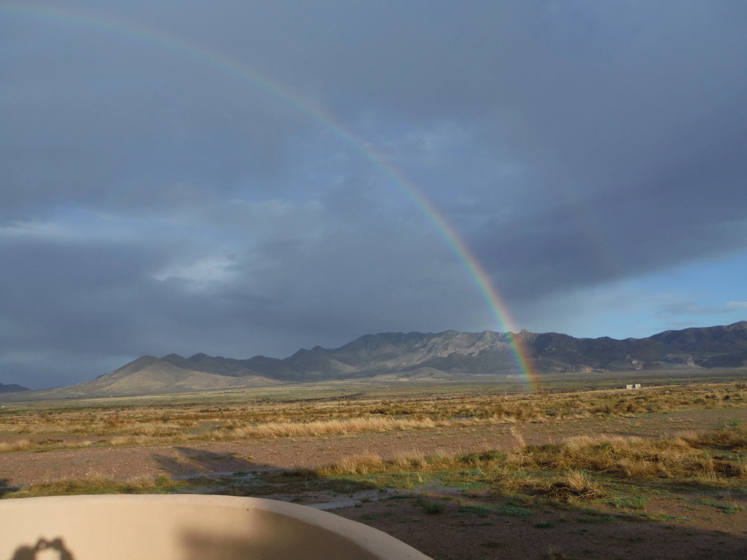 The rain ended as suddenly as it began with a spectacular double rainbow. I’ve seen doubles before but never one with both ends visible on the ground.