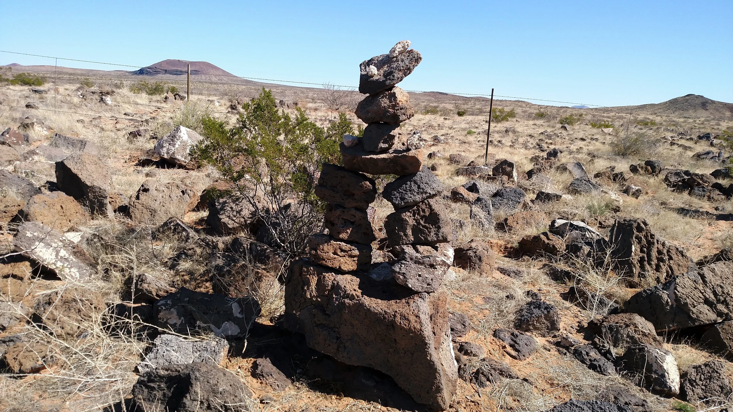 Today we arrived in El Paso. On the way John found the most interesting set of cairns and monuments.