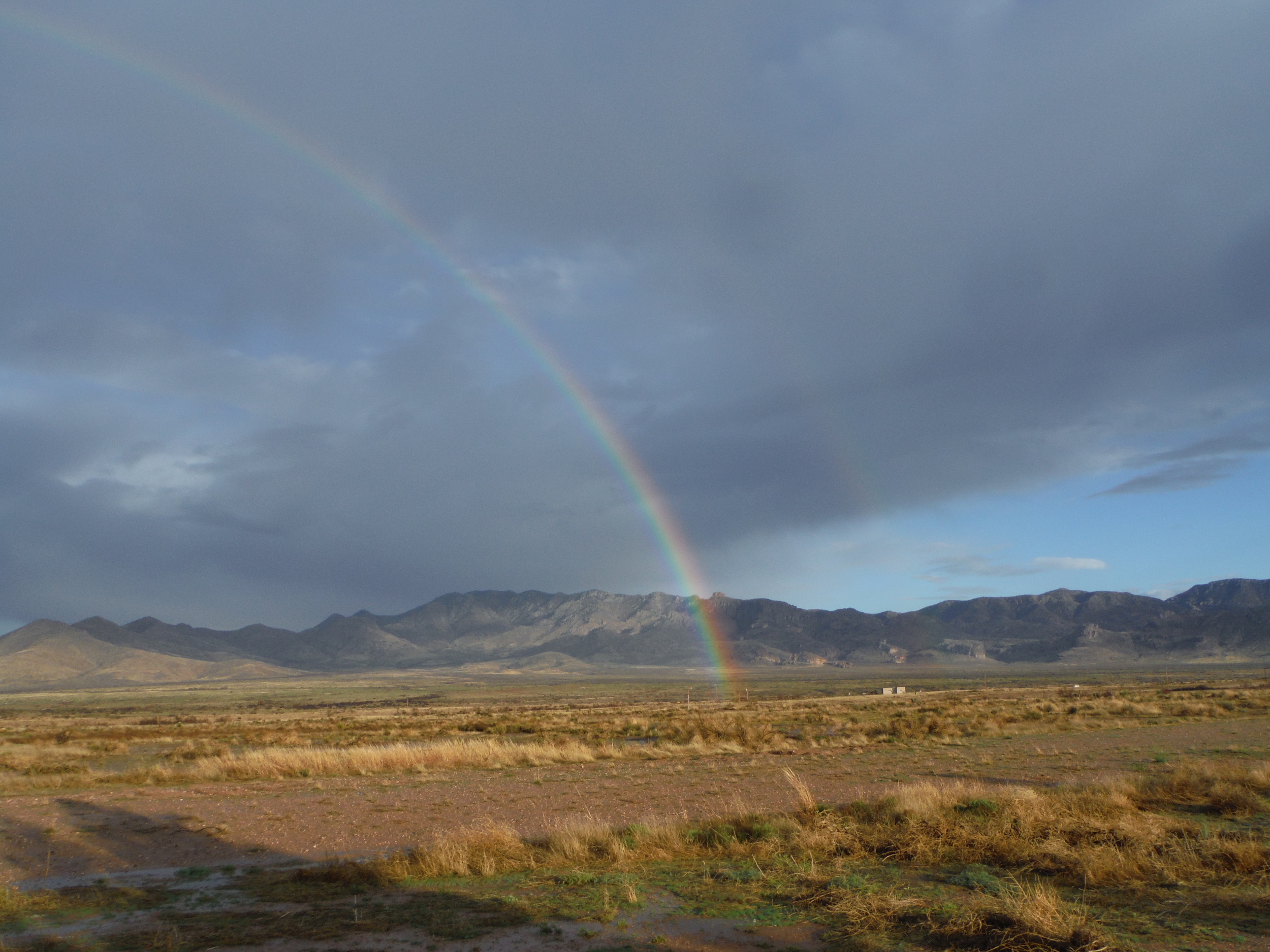 We stayed at the Painted Pony ranch in Rodeo, NM. Thank goodness we had indoor sleeping arrangements as a fierce T-storm came up in the afternoon and dumped rain for hours. After the rain there was a double rainbow. I’ve never seen both ends of a double rainbow touching the ground before. My camera would only capture half. So grateful to get to see it. Doubly appreciative since one of the riders [back saddle of tandem] is nearly blind.