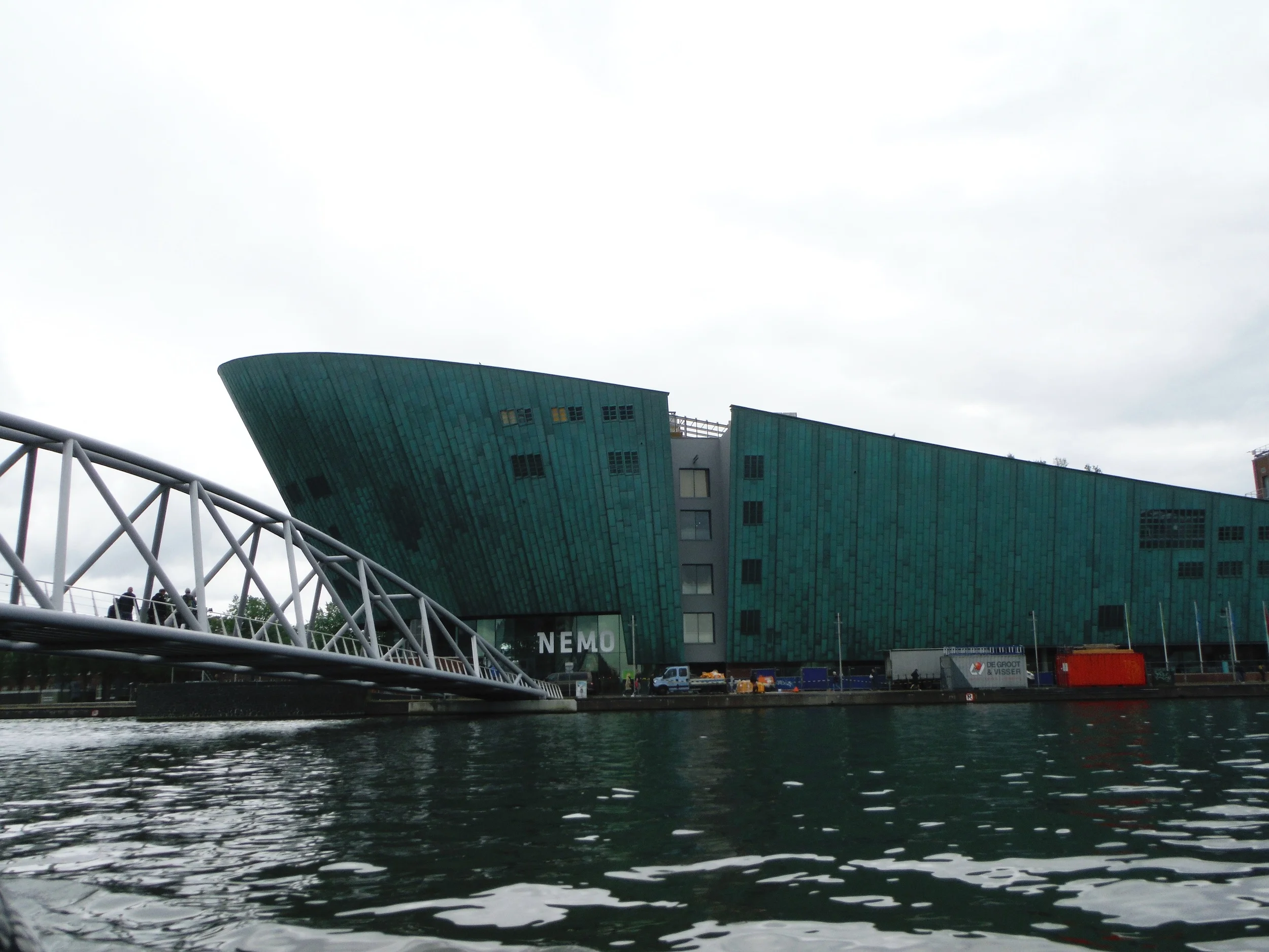 We were free to wander the city. Just north of the boat dock we discovered an open air market set up in the street in a working class immigrant neighborhood. Everything from raw herring to hair dye was available. From there we took a tour by boat through the canals. There were old buildings, the new ship-shaped science museum [?], canal bridges and this tenacious duck who managed to make a nest on the fins of a small boat.