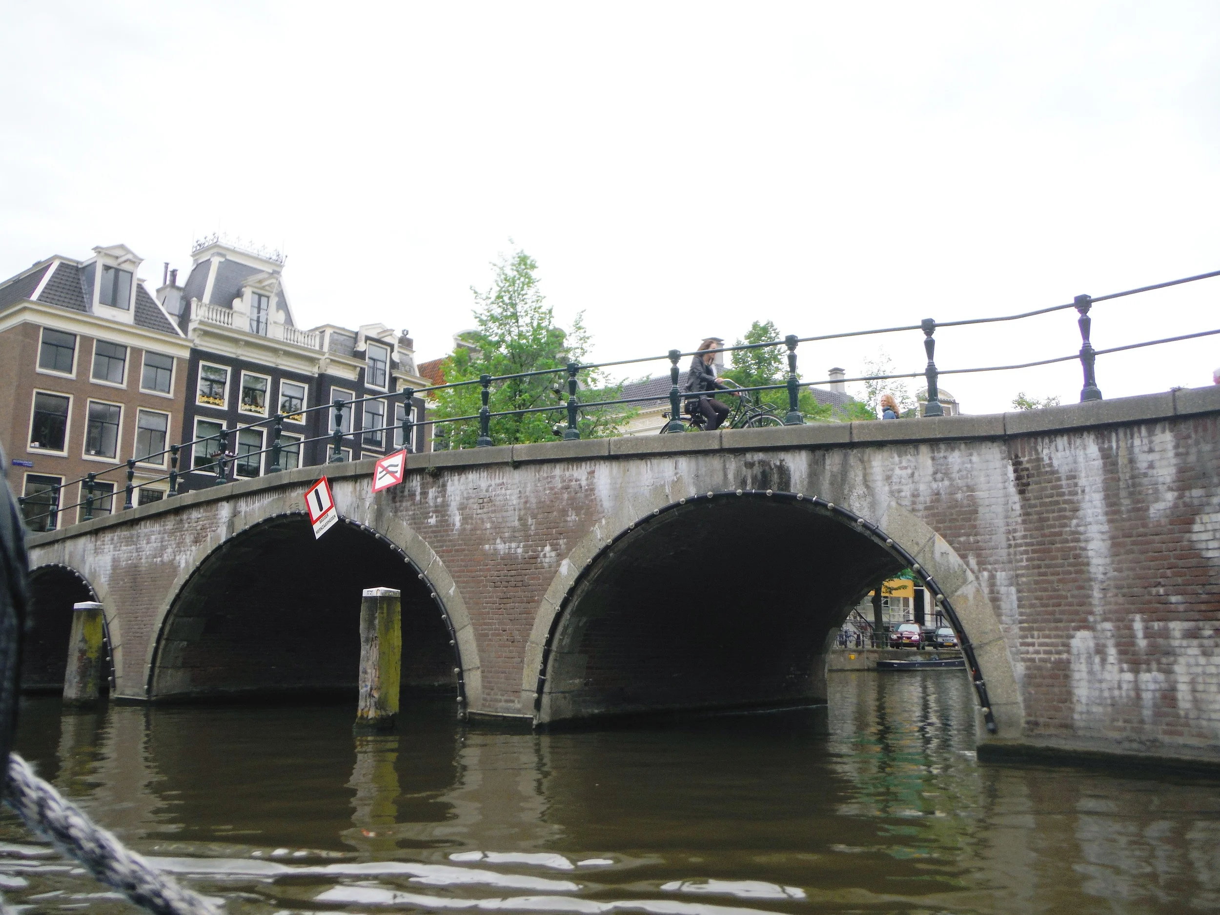 I can imagine that they were built to fit a single horse drawn cart. Somehow now I could see a car, several pedestrians and a few bikes all crossing at once. We were treated to a small open electric boat tour of the smaller canals through farm land and towns. The boatman showed us that the farmland is actually floating. He jumped and the land bounced.